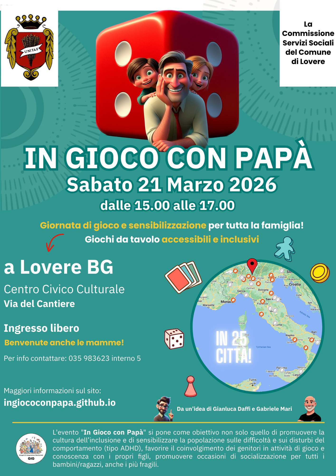Sabato 21 marzo 2026, in numerose città italiane, si terrà la terza edizione di “In gioco con Papà”, un evento nazionale dedicato al gioco e all’inclusione.